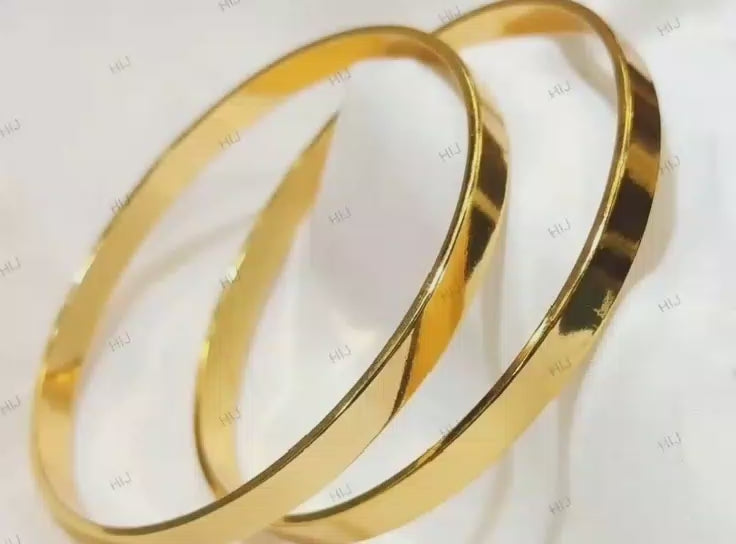 Design: Simple, classic, and polished. The video shows two bangles with a smooth, highly reflective surface.