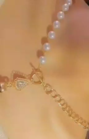 Aesthetic: This set is very bold and fashion-forward, leaning into the trend of contrasting textures (chunky chain vs. smooth pearls) and asymmetrical design.